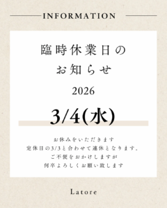 店内ポップではご案内しておりましたが、3月4日にお休みをいただきます。